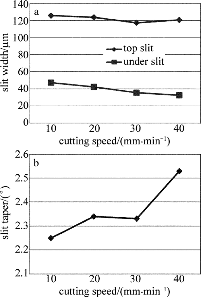 Figure 4.  Slit width and slit taper with the change of cutting speed