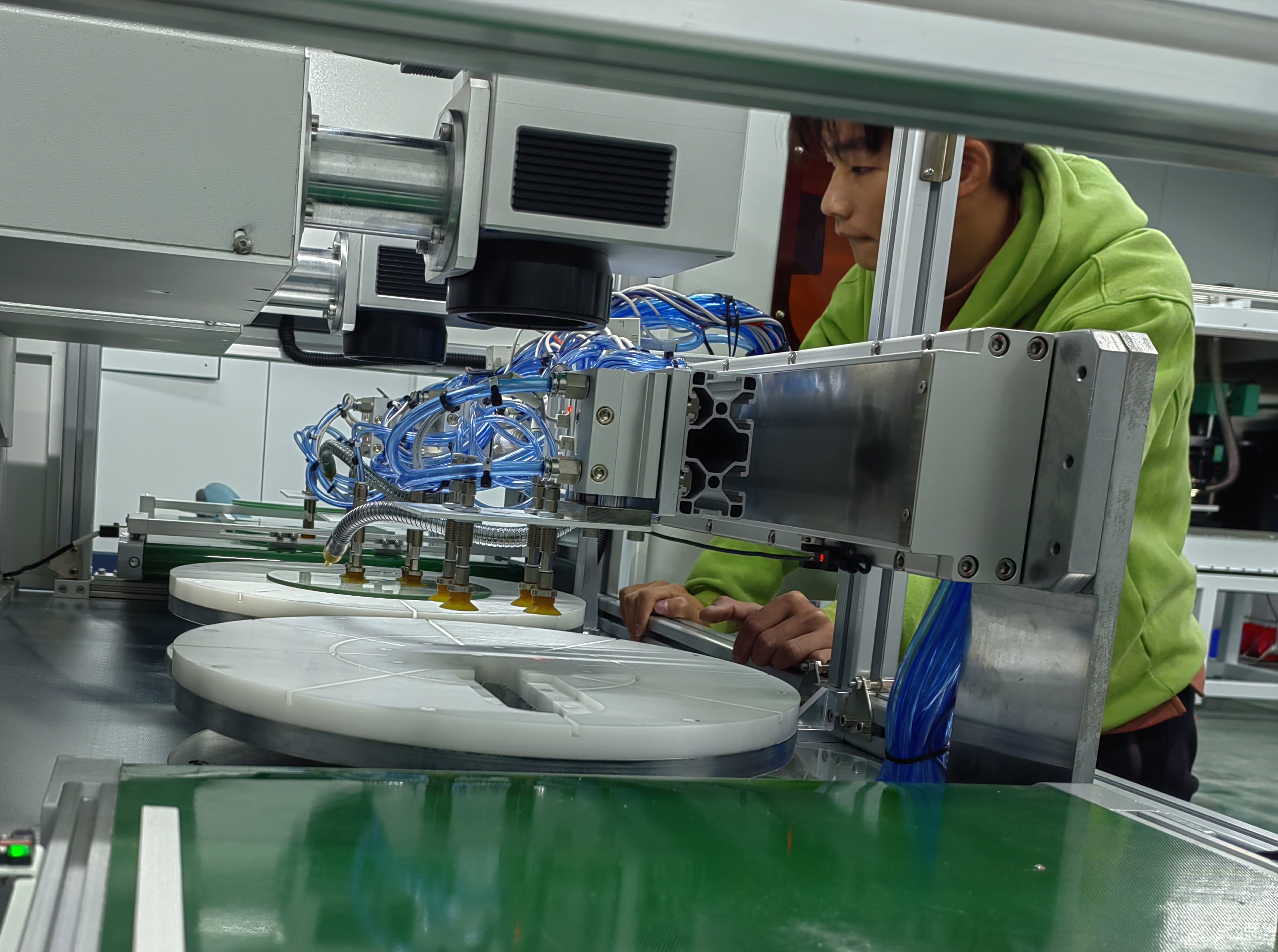 1.全自動運(yùn)行,自動上下料打孔清洗烘干,與產(chǎn)線嵌入式匹配,與鋼化爐對接,實(shí)現(xiàn)在線式全自動連續(xù)批量加工生產(chǎn)。